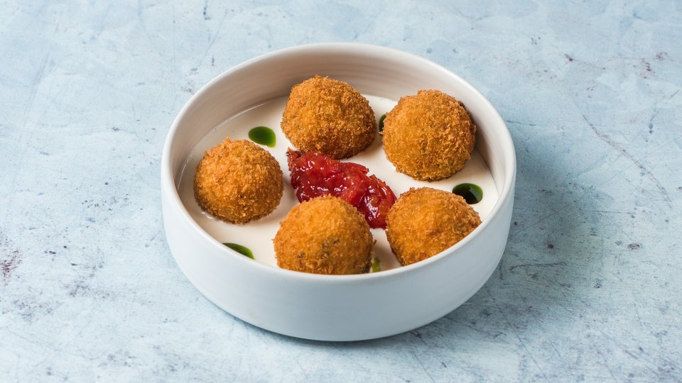 Gnocchi πατάτας, κρέμα μετσοβόνε, σύκα ποσέ, άγρια μανιτάρια, τρούφα, prosciutto chips
