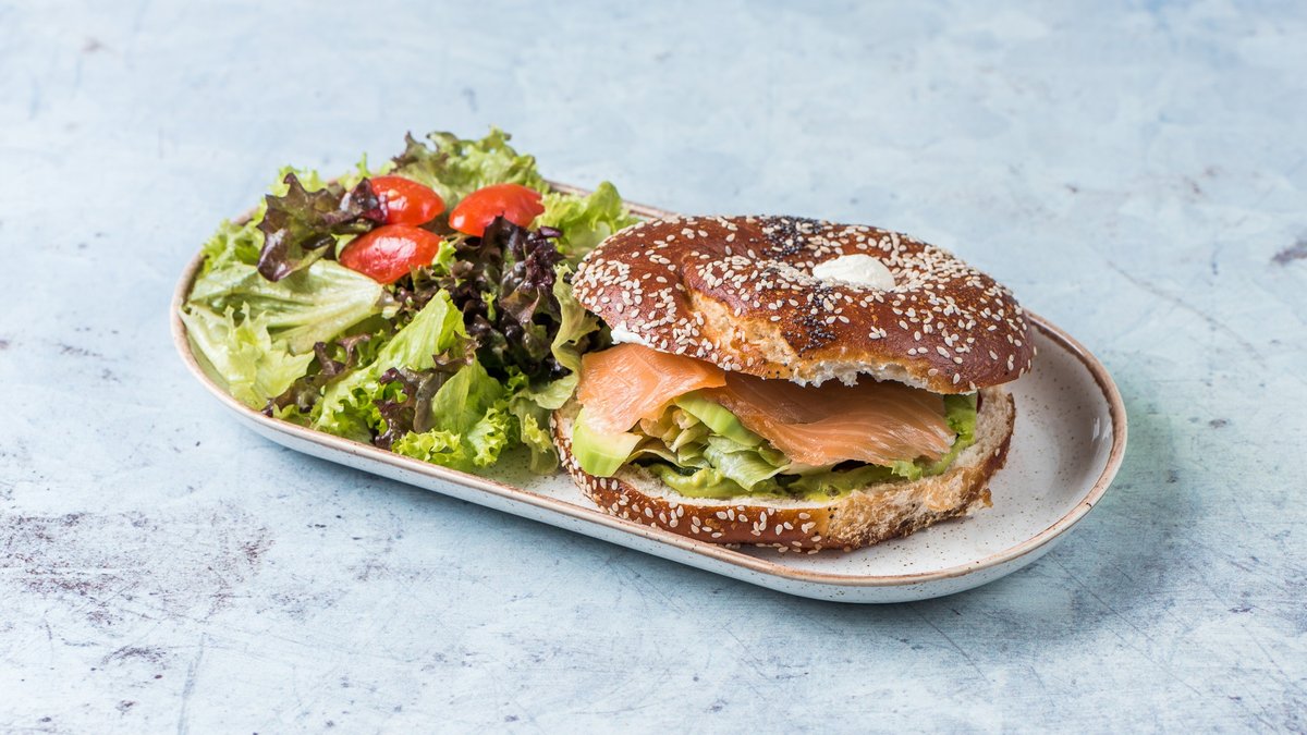 Βιολογικό αυγό της επιλογής σας (τηγανητό ή ποσέ), καπνιστός σολομός, κρέμα αβοκάντο, hollandaise sauce, πράσινη σαλάτα
