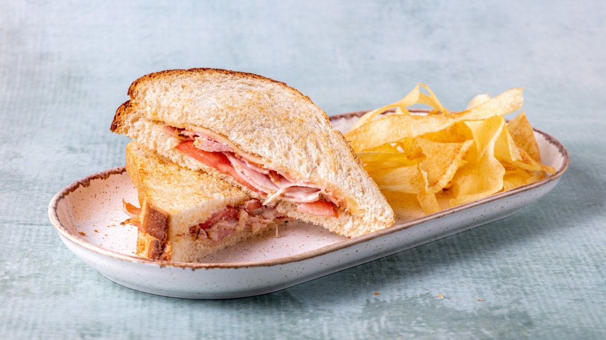 Φρυγανισμένο προζυμένιο ψωμί sourdough (κίτρινο ή σίκαλης), κοτόπουλο πανέ, τυρί cheddar, χοιρινή πορκέτα, ομελέτααπό βιολογικά…
